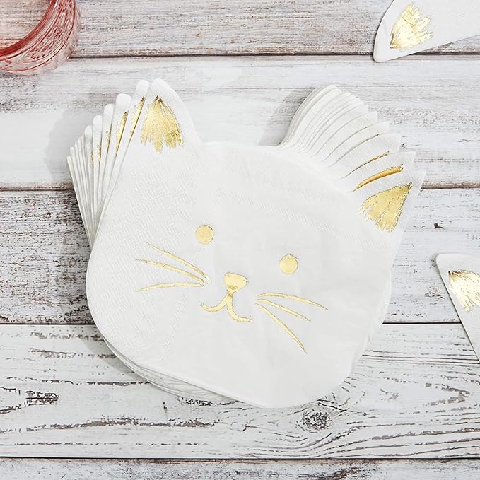 Set 8 servilletas troquelada Carita de gato con foil dorado