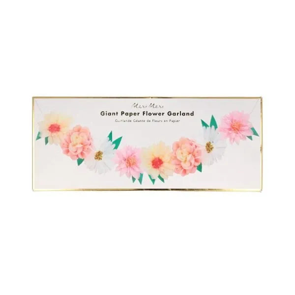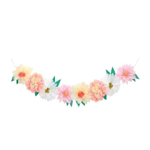 Esta fabulosa guirnalda de flores agregará belleza a cualquier ambiente de celebración o como una hermosa decoración en su hogar. Confeccionado con papel de seda, con detalle de lámina dorada y ensartado en un cordón natural. La guirnalda se entrega plana y es fácil de montar.