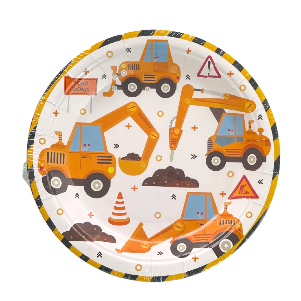 Estos platos son ideales para un cumpleaños de carros de construccion, con excavadoras, señales de precaución, y material de construcción para esos pequeños curiosos, que sienten pasión por construir.
