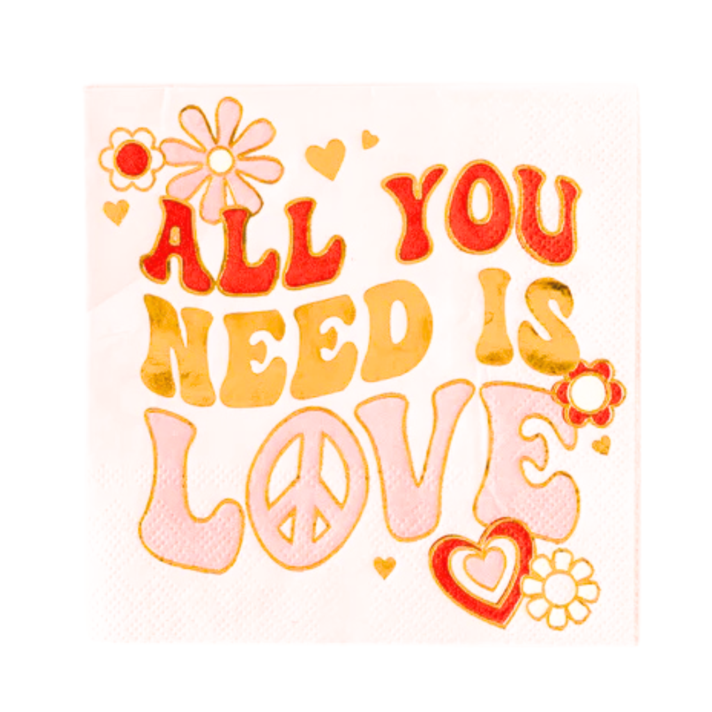 Esta servilleta sabe exactamente lo que necesitas: ¡Amor! Con su diseño retro en rosa y dorado, siempre te recordará que lo único que necesitas es amor. ¡Celebra cada ocasión con un toque de amor!